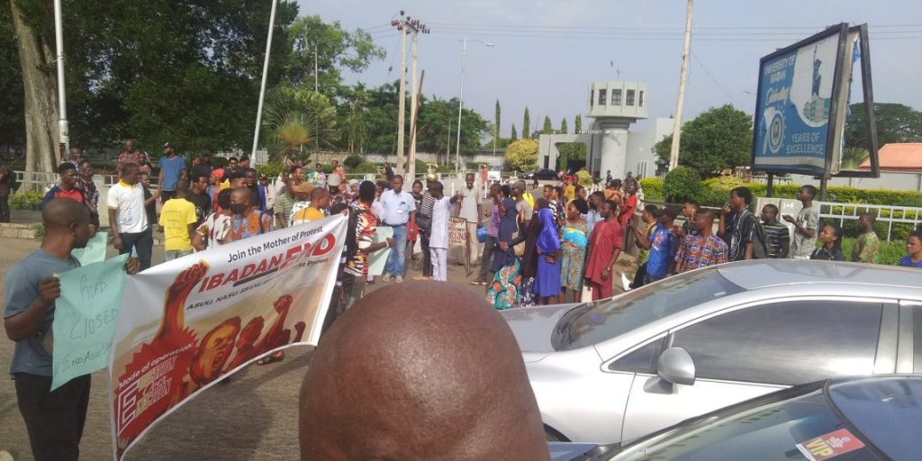 Hundreds of concerned students in Oyo State, on Friday, protested at the main gate of the University of Ibadan (UI) over the ongoing Academic Staff Union of Universities (ASUU) strike.