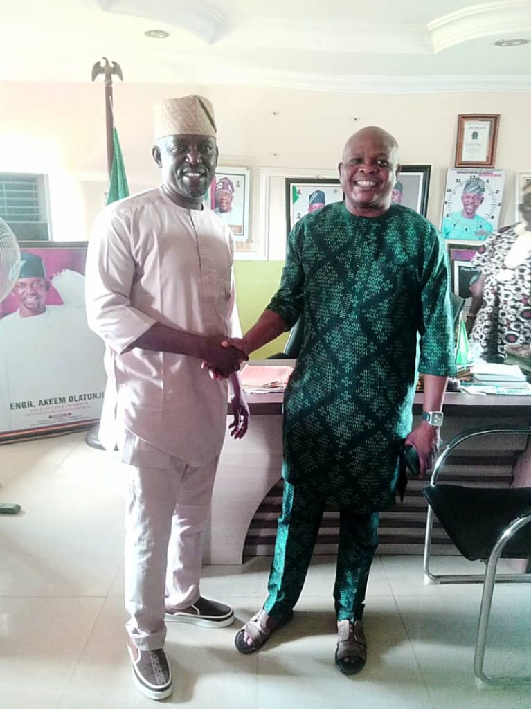 The executive chairman of Oluyole local government, Engr. Akeem Olatunji, yesterday received Honorable Abass Aleshinloye, a former two term executive chairman of the council, in his office.