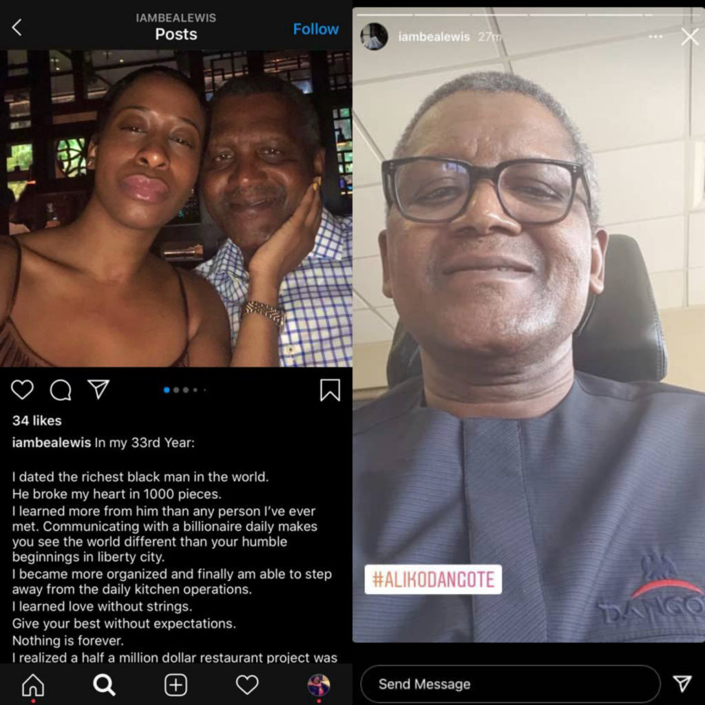 A lady recognised as @iambealewis on instagram has narrated how she dated tbe richest black man on earth and how the relation had hit the brink .