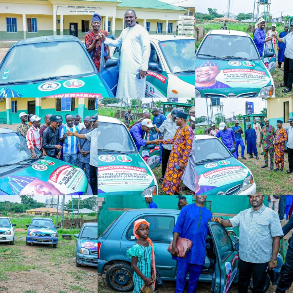 The Ibadan North APC Youth leader Hon. Jubril Aliu Babatunde, and the Public Relations Officer (P.R.O) of the party in Ibadan North, Hon. Dauda Adetoyese Atunlute each got their individual cars. Members of the Odusina group were also given a car to support their group, while another individual beneficiary from the constituency also got a car, all from Prince Akinremi Jagaban.