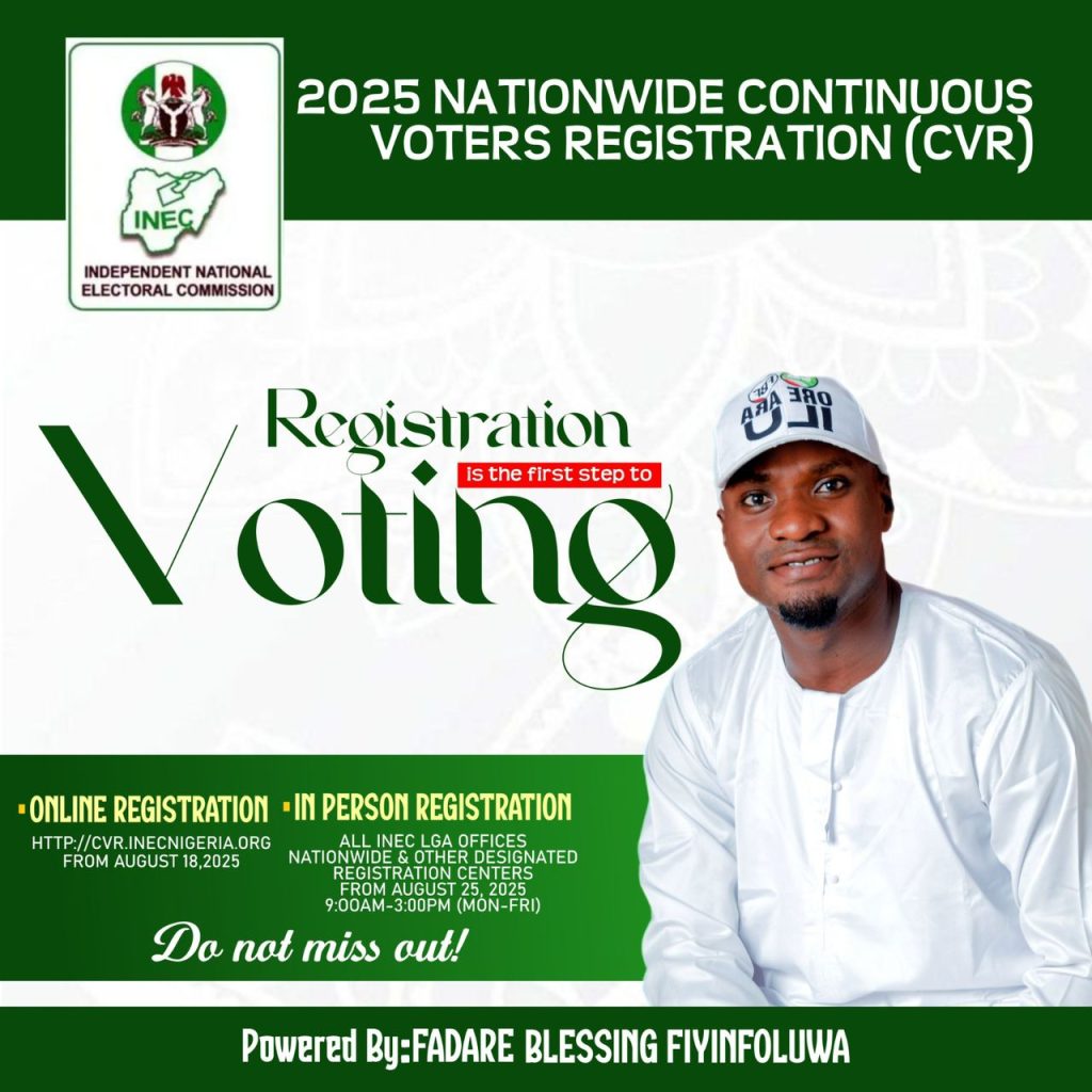 In a passionate call to action, civic advocate Fadare Blessing Fiyinfoluwa has urged Nigerians to prioritize registering for and securing their Permanent Voter Cards (PVCs), describing it as the key to meaningful participation in the nation’s democratic process.