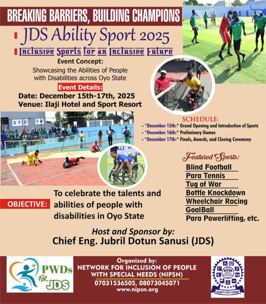 Preparations are underway for the JDS Ability Sport 2025, a major sporting event aimed at celebrating the talents and abilities of people with disabilities across Oyo State.